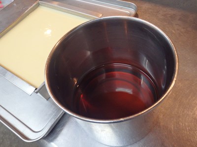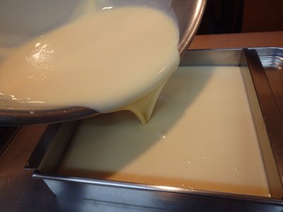 固まったら、バットに移し、冷凍庫で冷やし固めます。