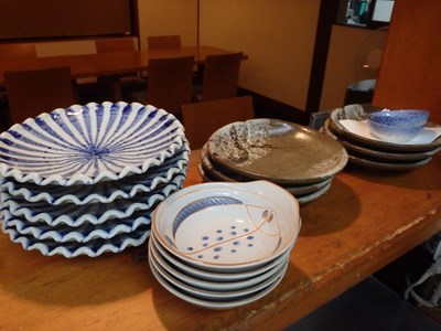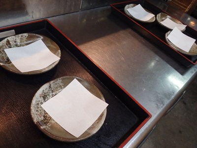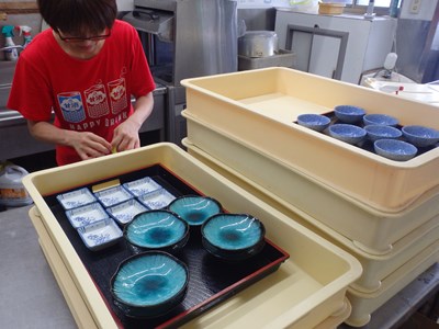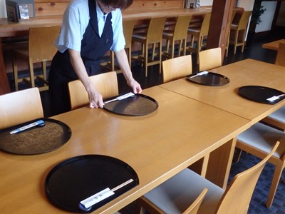 食事をしてもらうため、テーブルに半月盆などを準備し、