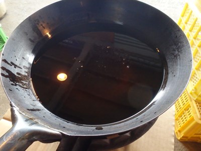 頃合いを見計らい、てんさい糖を数回に分け、味をつけていきます。