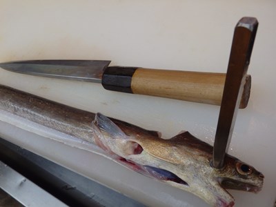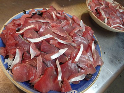 以前お話ししたことがあるように、自分は、刺身というより、ありとあらゆる食べ物の中で、鰹がもっとも好きですので、嬉々としながら、その場で頭を落とし、水洗いしてから、