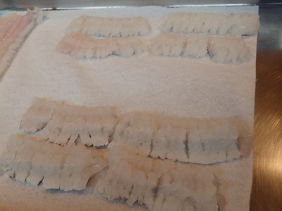 ふぐ刺を引き、下味をつけたふぐのあらには、