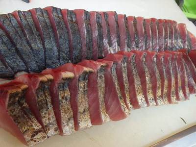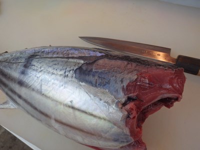 昨日の昼過ぎ、釣り好きの知人から、「志村さん、カツオ釣ってきたんですが、1本もらってもらえませんか?」というメールがあり、すぐさまに、折り返しの電話をし、程なくすると、