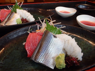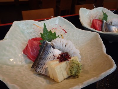 刺身の盛り合わせ(本鮪、赤鯥、はたの昆布締め、小肌)、