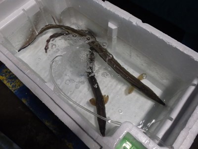 背の尾びれに近い部分は、青みがかっており、反対の腹側の同じ箇所を触ると、鮮度が良いこともあり、ザラザラしていました。