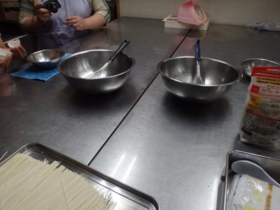 天ぷらと素麺などを盛り付ける器を用意しておきましたが、言うまでもなく、今回の企画は、作った天ぷらを、お昼ご飯を兼ねて、食べて頂くものです。