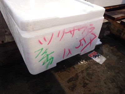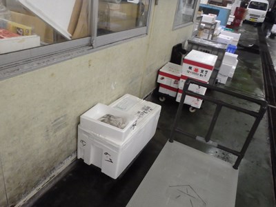 この2本のとらふぐ(天然)が届くことになっていたので、魚市場に行って来ました。