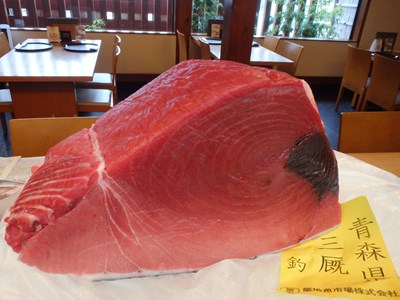 豊洲初日の生の本鮪(ほんまぐろ)は、青森県三厩(みんまや)産