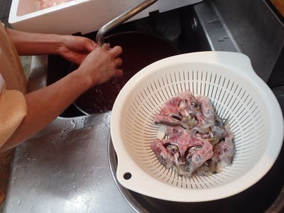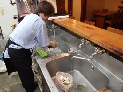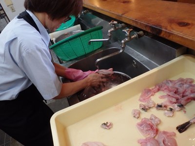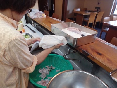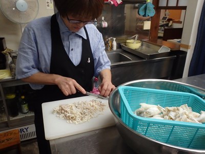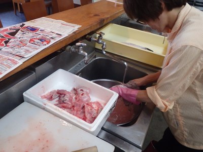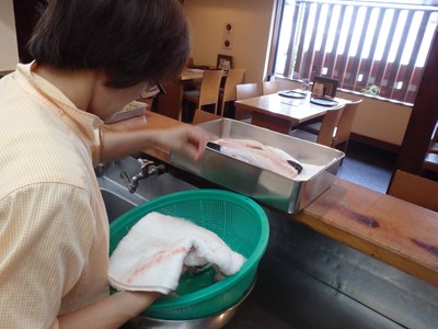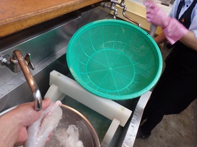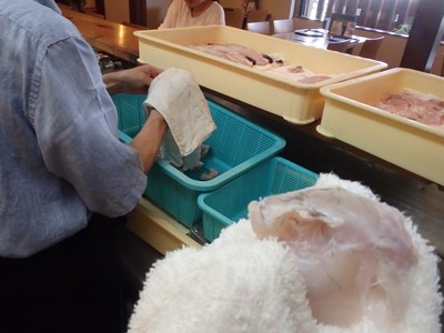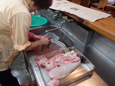 女将兼愛妻(!?)の真由美さんが水洗いしてくれ、水洗いしたものを、