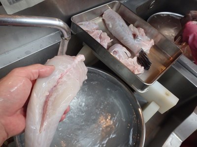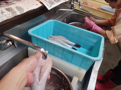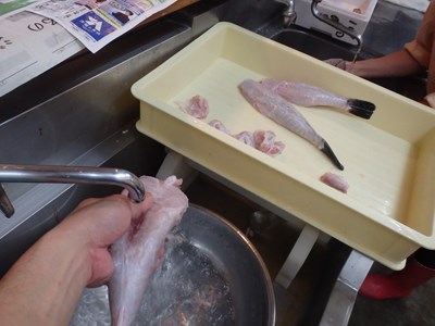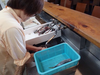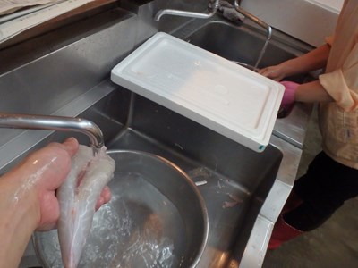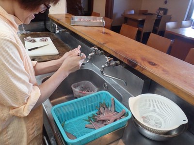 鯵のあらの掃除を終えた真由美さんは、