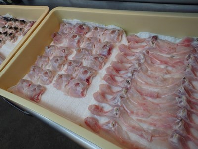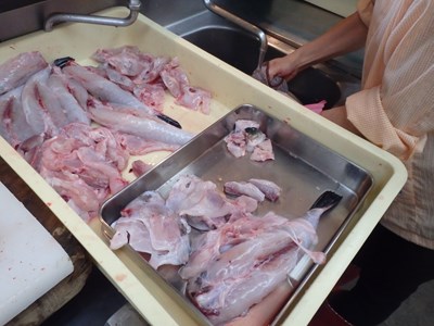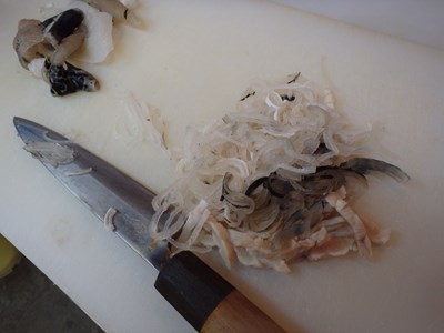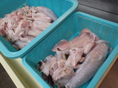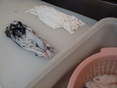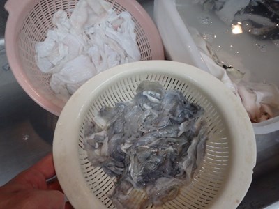 女将兼愛妻(!?)の真由美さんに手伝ってもらい、木曜日、金曜日、土曜日と三日連続で卸した天然のとらふぐの皮の下処理をすることにしましたが、ふぐ皮の下処理の第一弾については、こちらをお読み下さい。
