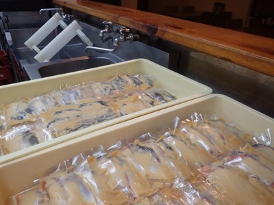 仕上がった銀鱈とサーモンの『西京漬』を、