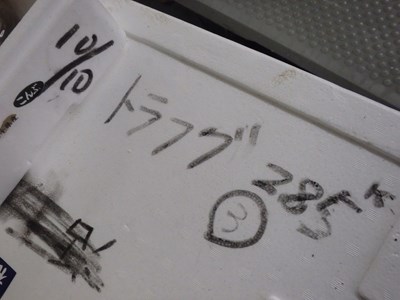 昨日の3本(三重・熊野産)と、三日連続で、天然のとらふぐを仕入れただけでなく、先週の土曜日と、二週連続で休市日に、天然のとらふぐを仕入れました。