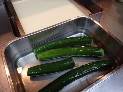 酢の物に使う蛇腹胡瓜も包丁しておいたのですが、蛇腹胡瓜とは、このようなもので、この時点では、塩水にはつけておきませんでした。