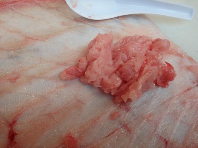 そして、血合いの周りや、皮に残ったすき身の部分は、