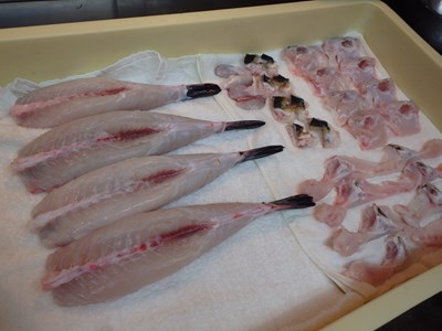 鯵の仕込みで、頭を落とし、はらわたを抜いたら、