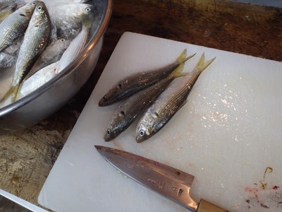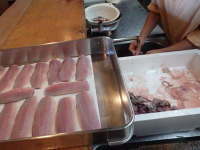 野菜の類の仕込みは、まな板がそれほど汚れないだけでなく、使う野菜が共通していることもあり、良い意味でついでとなるのに対し、使い勝手と仕込みに違いがある魚は、どうしても手間がかからざるを得ません。