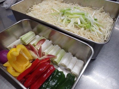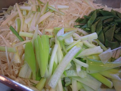 細かく千切りに包丁するばかりとなり、同時進行で、