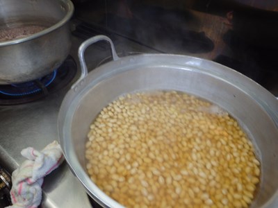 小鍋に使う大豆と、