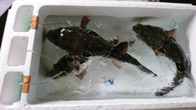 熊野灘産のとらふぐが届いているのを確認しました。