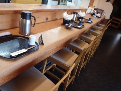 先程お話ししたように、2組のバスの御席ですので、お座敷、テーブルも満席で、カウンターには、テーブル席にお座りきれなかったお客様と、