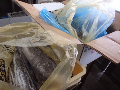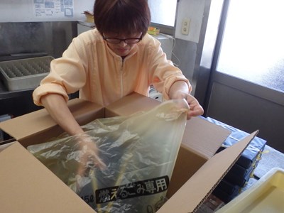 段ボールに未使用のごみ袋に入れてから、包装した『西京漬』を入れ、