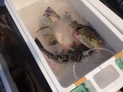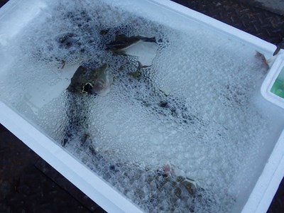 お腹に残っていたエサを吐き出していて、海水は濁っていましたものの、中の5本は、全て活きており、この5本は、舞阪産でした。