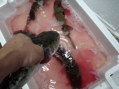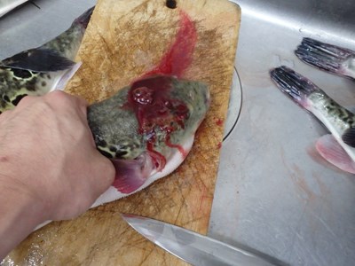卸すことにしたのですが、とらふぐに限らず、ふぐ類の血液は無毒ですので、そのまま処分しても、何ら問題はありません。