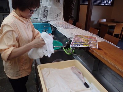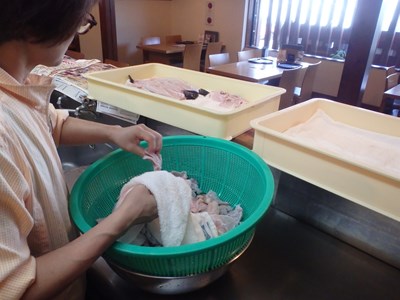 女将兼愛妻(!?)の真由美さんが水洗いしたものを、