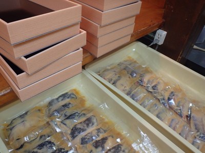 仕入れ、仕込み、箱詰め、未包装の『西京漬』