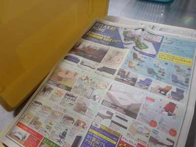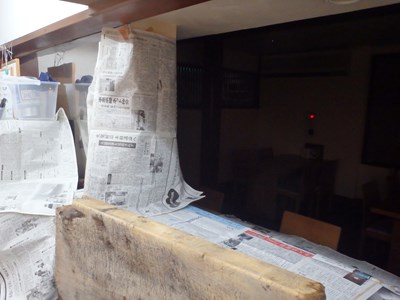 汚れないよう、新聞紙で養生し、