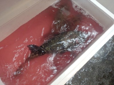 血抜きのため、海水へ。