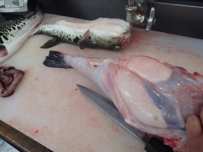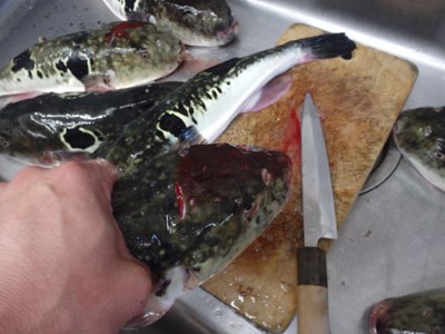 3本のとらふぐ(天然)の仕込みが終わりました。
