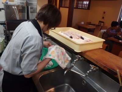 女将兼愛妻(!?)の真由美さんが水洗いしてくれました。