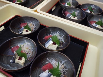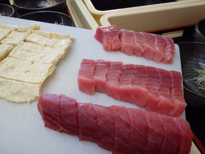 ただ、刺身は、盛り付けに一番手間が掛かるので、一番最初にお出しする先付(南京豆腐)を盛り付けてから、