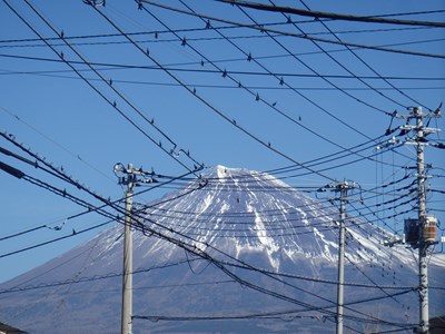 バスのお客様は、静岡県内でも、中部、西部地方の方をはじめ、山梨、長野、関東地方など他県の方で、この風景を見ると、皆が皆、「あの電線、どうにかしてよ~。」とか、「折角、富士山が見えるのに、電線が邪魔なんだけど・・・。」と、口にします。