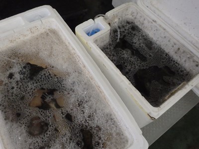 発送前に、三重県熊野の魚屋さんに送られてきた写真を見て、BIGちゃんのお腹の膨らみが気になったので、トップバッターをBIGちゃんにしたところ、