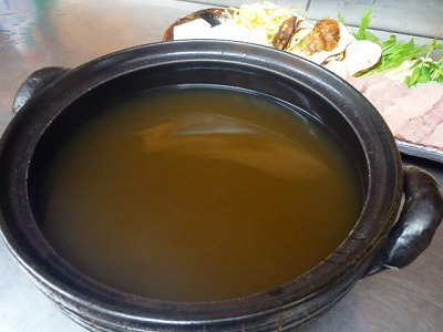 塩、薄口醤油、日本酒、味醂、赤酒で味を調えた出汁を、大鍋にはり、お出ししました。出汁は、鱧のあらで取ったものです。