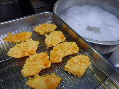つけだれを、当店のオリジナル料理の“サラダ素麺”の胡麻だれにしたりすることもありますが、今日のように、天ぷらを揚げることが多く、