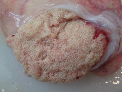850グラムを越え、合計で約1,5キロということになり、全体重の15%が、卵巣ですので、まさに泳ぐ生殖腺です。