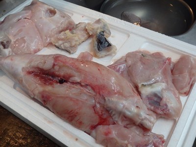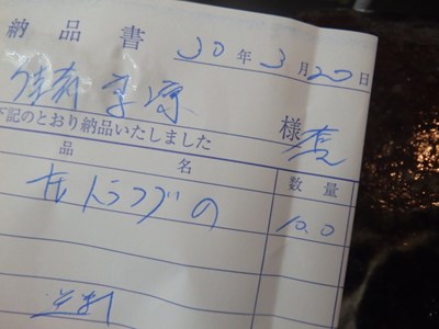 昨日お話ししましたように、三重県熊野灘産のジャンボちゃん(10,0キロ)こと、超特大の天然のとらふぐが届くことになっていたので、今朝は、