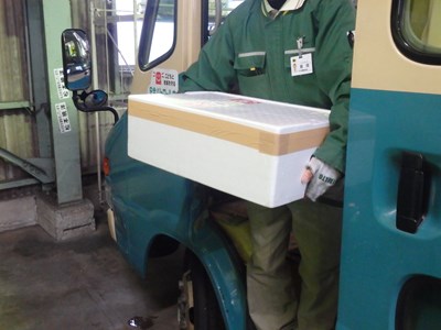 自分宛てと思しき発砲スチロールが目に入ると、ドライバーに声を掛け、