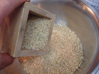 取り出し、玄米は白米のように、研ぐ必要はないので、2,3回軽く洗ってから、