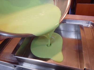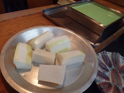 小肌の次に、うすい豆腐(グリンピースの豆腐)を仕込み、