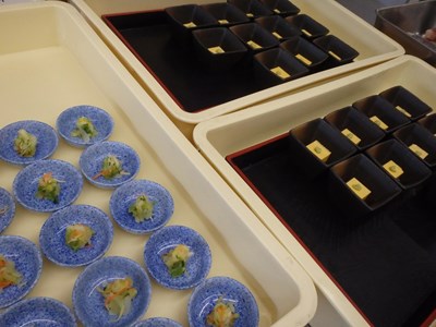 そのお料理の盛り付けをすることにし、ひととおりの盛り付けを終える頃までに、銀鱈も解凍出来たので、