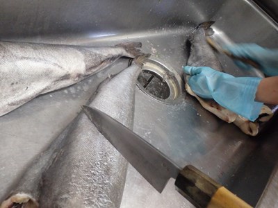 また、今日は、バスツアーの団体のお客様がお見えになるので、銀鱈をおろす前に、