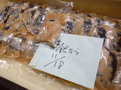 実を言うと、今朝は沼津魚市場に仕入れに行き、御歳暮用の『西京漬』のサーモン(ノルウェー産)を仕込む予定でしたが、4日連続で早起きとなると、あ゛ぁ~んまりにもハードですので、予定を変更し、銀鱈(アラスカ産)に鞍替えをすることにし、夕べの時点で、冷凍庫から銀鱈を出しておきました。