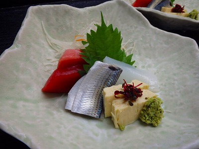 槍烏賊(銚子)、小肌(佐賀)、湯葉と共に、盛り付けました。